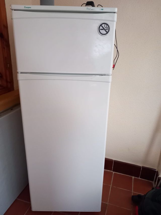 Detalles del productoFrigorífico de la marca Aspes en color blanco. Dispone de dos puertas, una para el congelador y otra para el refrigerador. Funciona perfectamente.