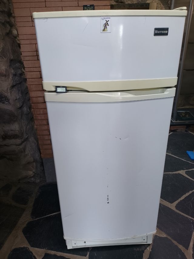 Detalles del productoFrigorífico Butsir de dos puertas, ideal para caravanas o lugares sin acceso a electricidad.