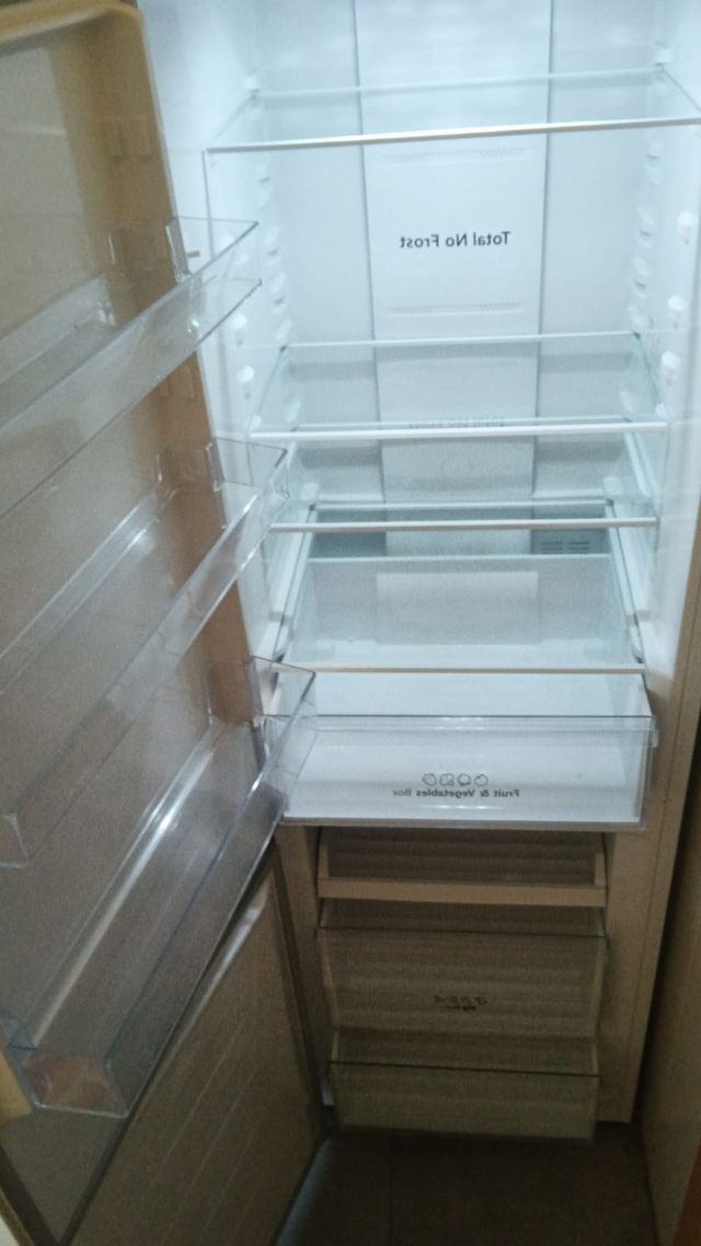 El frigorífico tiene año y medio de uso y está en perfecto estado. Sólo tiene un pequeño golpecito en la puerta, apenas visible (se ve en las fotos). El interior está perfecto.