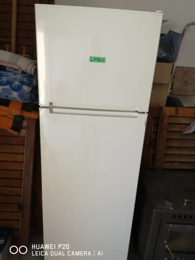 Frigorífico de la marca Lynx en color blanco. - Diseño de dos puertas. - Etiqueta de la marca LYNX en la puerta superior.