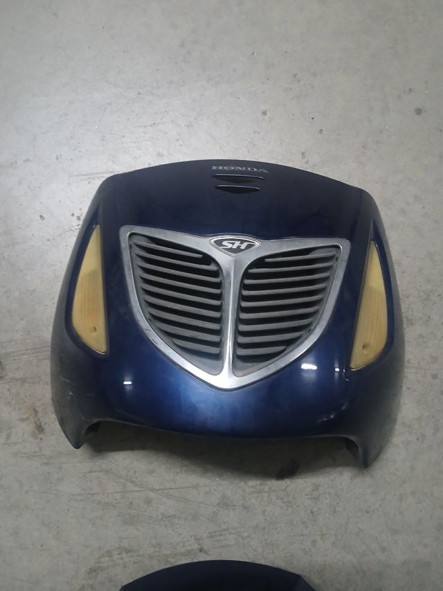Pieza frontal para Honda Scoopy SH 125/150. Color azul. - Incluye intermitentes delanteros. - Rejilla frontal marco plateado