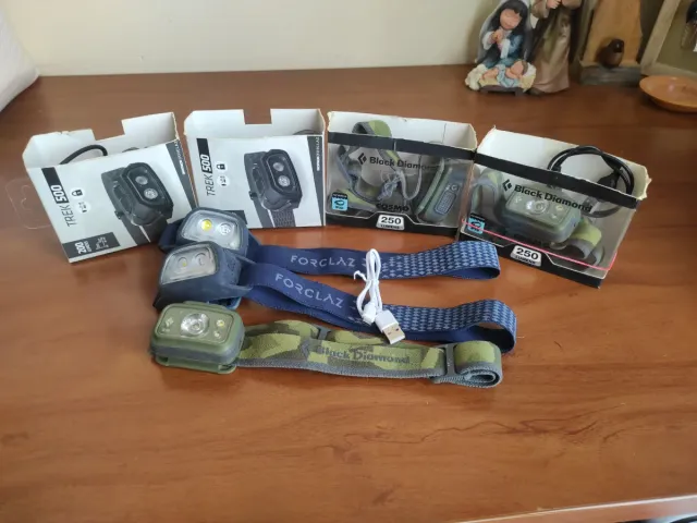 Conjunto de frontales de luz. -Hay 7 frontales, de tres modelos distintos. -Prexio.por unidad.