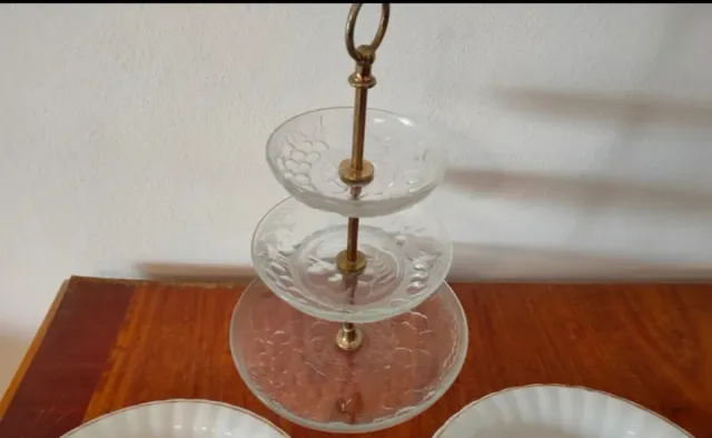 Elegante frutero de cristal con un diseño de tres pisos. Perfecto para presentar frutas o aperitivos.