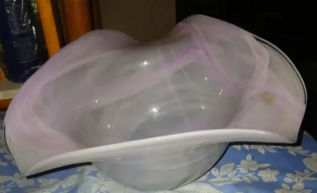 Detalles del productoElegante frutero de cristal soplado con un diseño ondulado y detalles en tonos lila. Su forma escultural lo hace ideal como pieza decorativa.