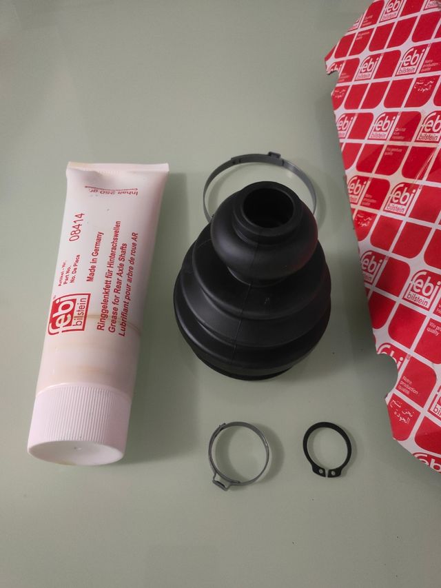Juego de fuelles, amortiguador para eje de transmisión de la marca FEBI BILSTEIN nuevo sin uso. Incluye grasa para lubricación y abrazaderas. El juego está en buen estado.