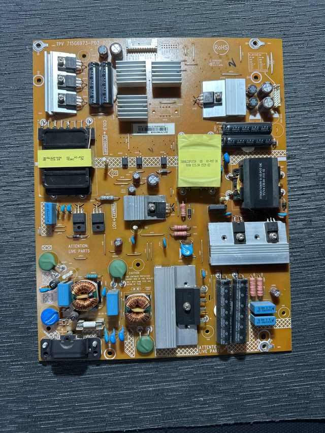 Sacada de televisor PHILIPS 55PUH4900/88 con pantalla rota. - Modelo: TPV 71566973-P03-002. - Componentes electrónicos montados en placa.