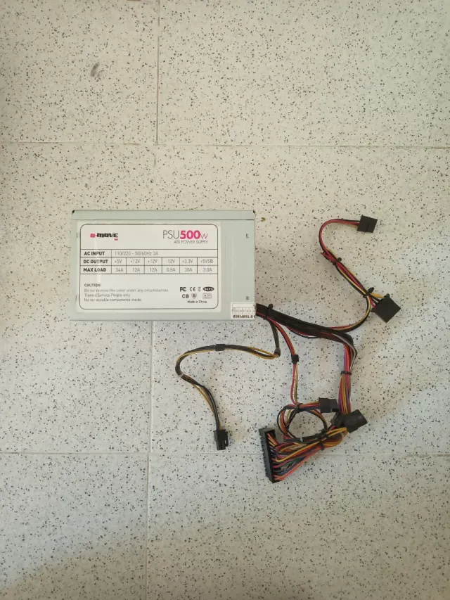 Detalles del productoFuente de alimentación B-Move de 500W. En perfecto estado. Cuatro conectores SATA y una conexión auxiliar para CPU aparte de la principal de 24 pines. Botón de encendido y apagado.