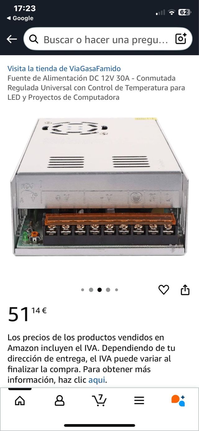 Detalles del productoFuente de Alimentación conmutada DC 12V 30A. Esta fuente de alimentación se ve en buen estado.