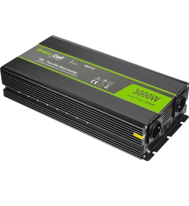 Green Cell INV15 - Fuente de alimentación e inversor para Coche (3000 W), Color Negro FALTAN LOS CABLES Y LOS FUSIBLES. DE HAY SU PRECIO REBAJADO.