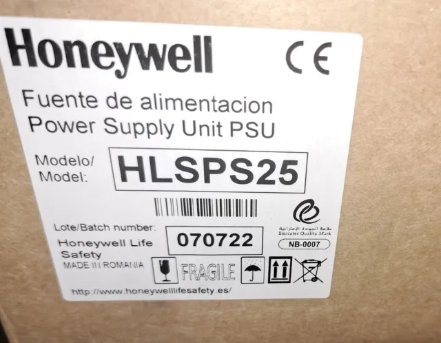 Fuente de alimentación Honeywell modelo HLSPS25 - Certificación Emirates Quality Mark NB-0007.