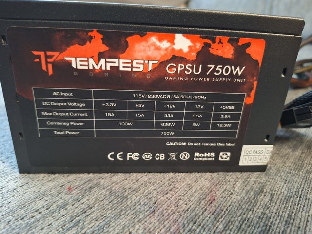 Fuente alimentación PC Tempest GPSU 750W Como nueva , solo se probó para testar un PC. No conservo la caja original. Lo q se ve en las fotos