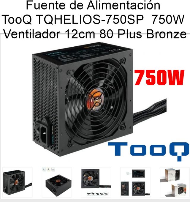Detalles del productoFuente de alimentación TooQ TQHELIOS-750SP con 750W de potencia y ventilador de 12cm.