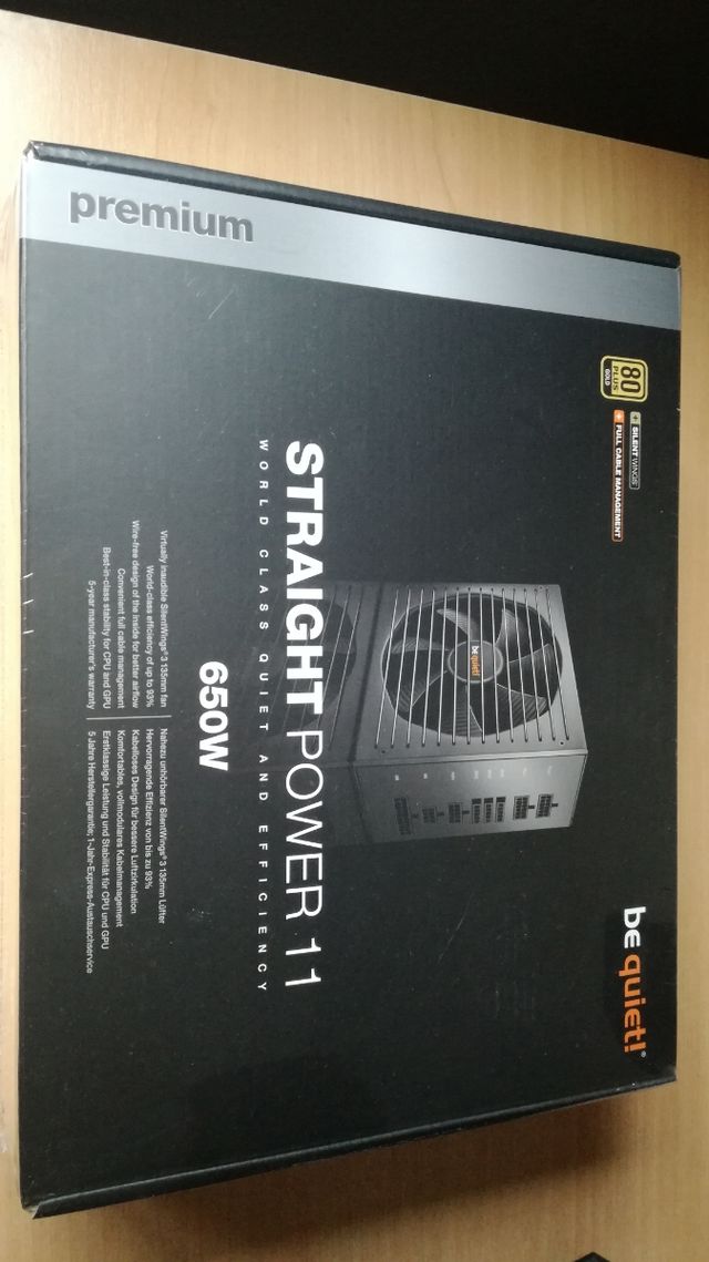 Detalles del productoVendo fuente de alimentacion Be Quiet! Straight Power 11 de 650W 80 + gold. Nueva a estrenar y con su precinto original.