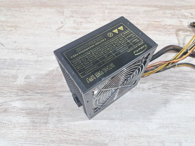 Detalles del productoFuente de alimentación Colorful ATX-550WH de 550W. En perfectas condiciones estéticas y de funcionamiento. Ideal para un ordenador doméstico, de oficina o un equipo gaming sin altas pretensiones.