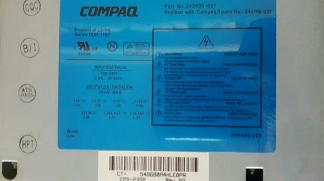 Fuente de alimentación pc Series Pdp-116p 243890-001 - 244166-001 250w atx compaq