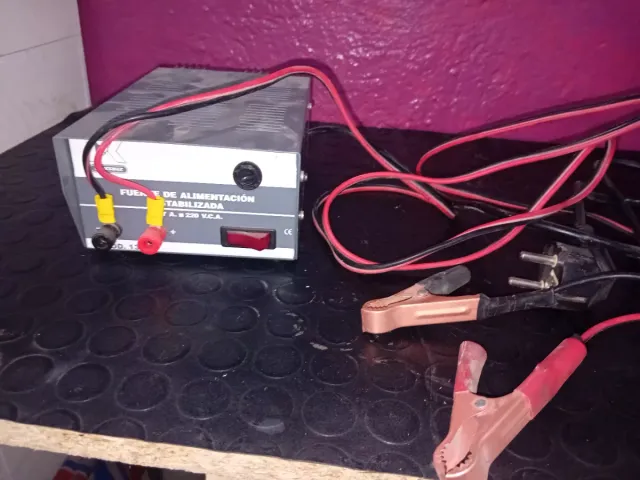 Fuente de alimentación estabilizada. - Modelo: 13 A - Voltaje: 220 V.C.A. - Con interruptor. - Conexiones de pinza de cocodrilo.