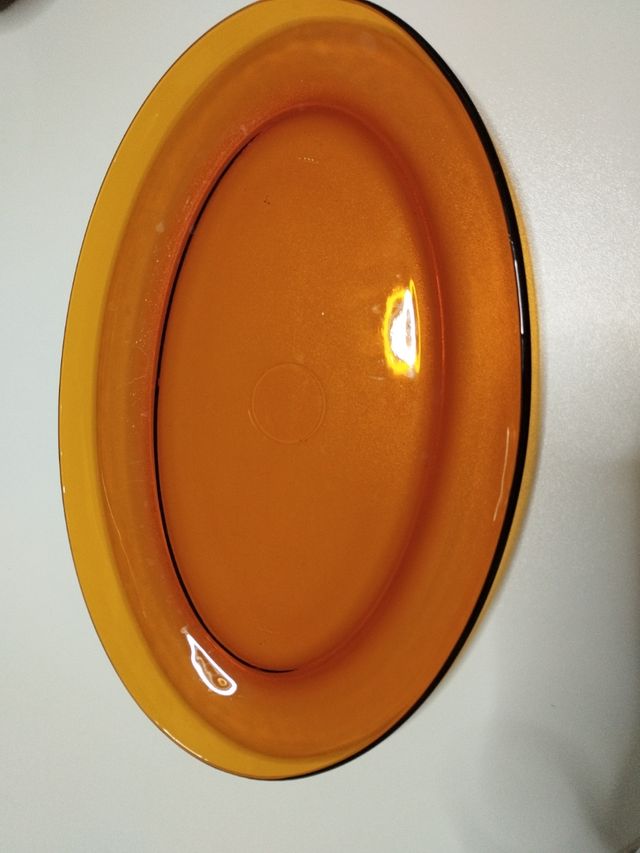 Fuente de Duralex color miel. Largo 36cm y alto 3cm