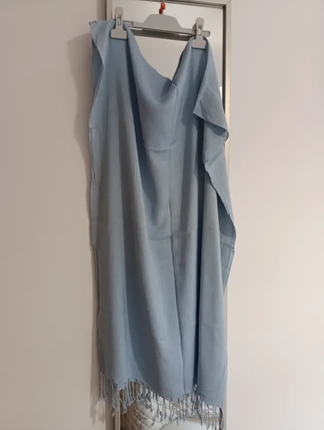 Fular celeste con flecos