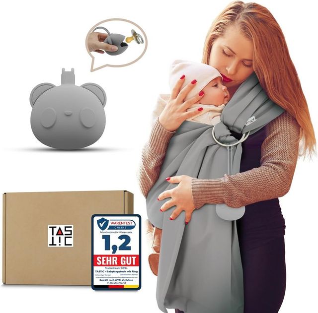 El portabebés elástico mejora la unión entre usted y su bebé. El anillo también se puede utilizar desde el nacimiento.