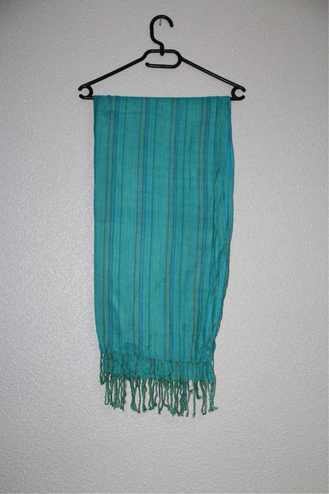 Fular turquesa con rayas y flecos