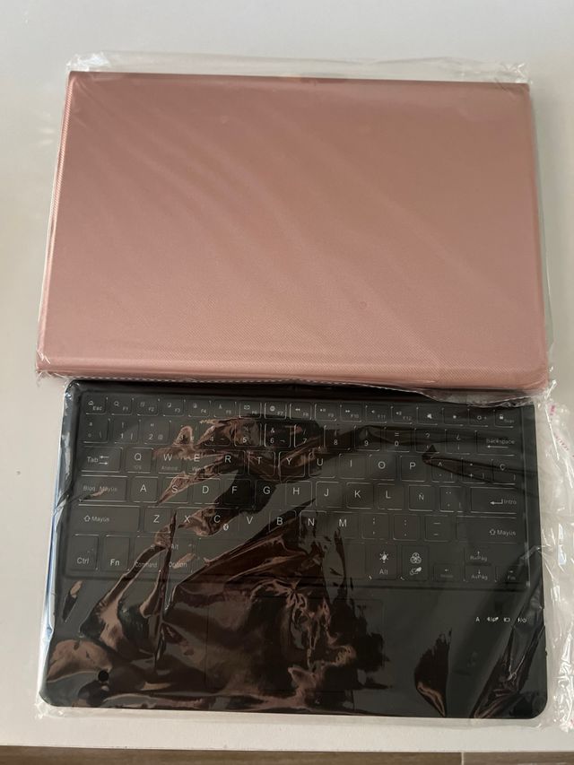 Detalles del productoTeclado y funda para Samsung Galaxy Tab S7 en color rosa dorado. El teclado es negro y ambos están nuevos, sin usar.