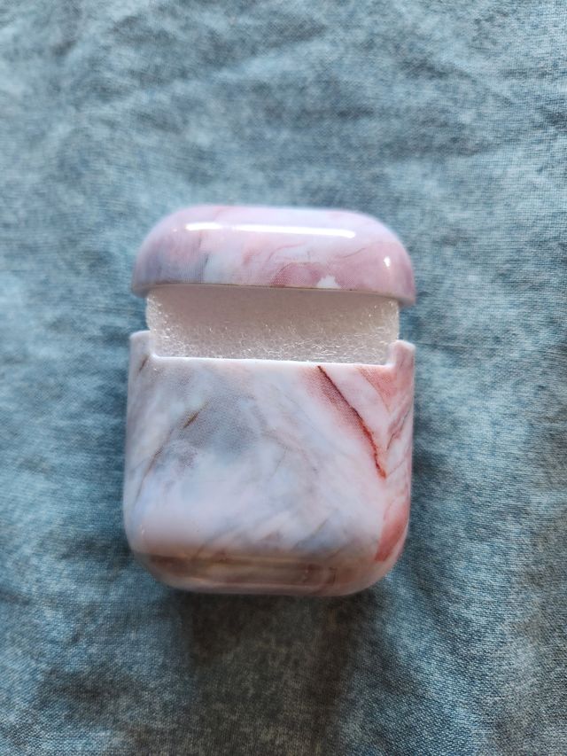 Detalles del productoPreciosa funda para AirPods 1 y 2. Tiene un diseño elegante con estampado de mármol en tonos rosas y blancos.