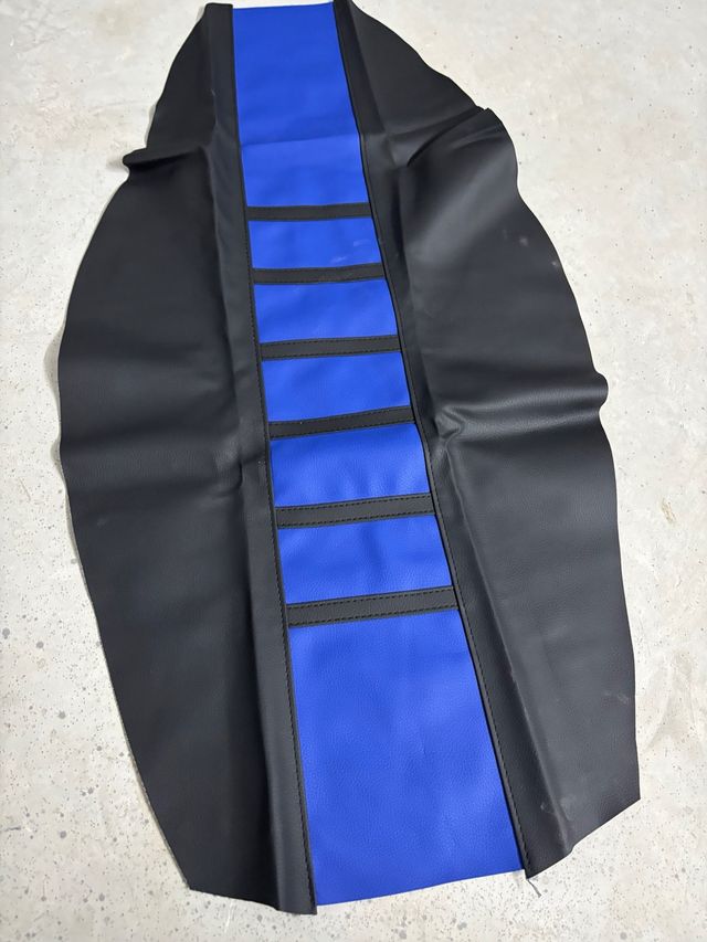 Detalles del productoFunda para asiento de motocicleta con un diseño bicolor.