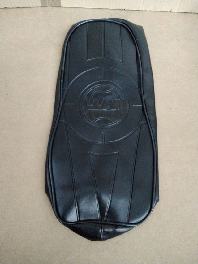 Detalles del productoFunda sillín sillon de color negra con inscripcion en el centro MT recambio nuevo de la epoca.