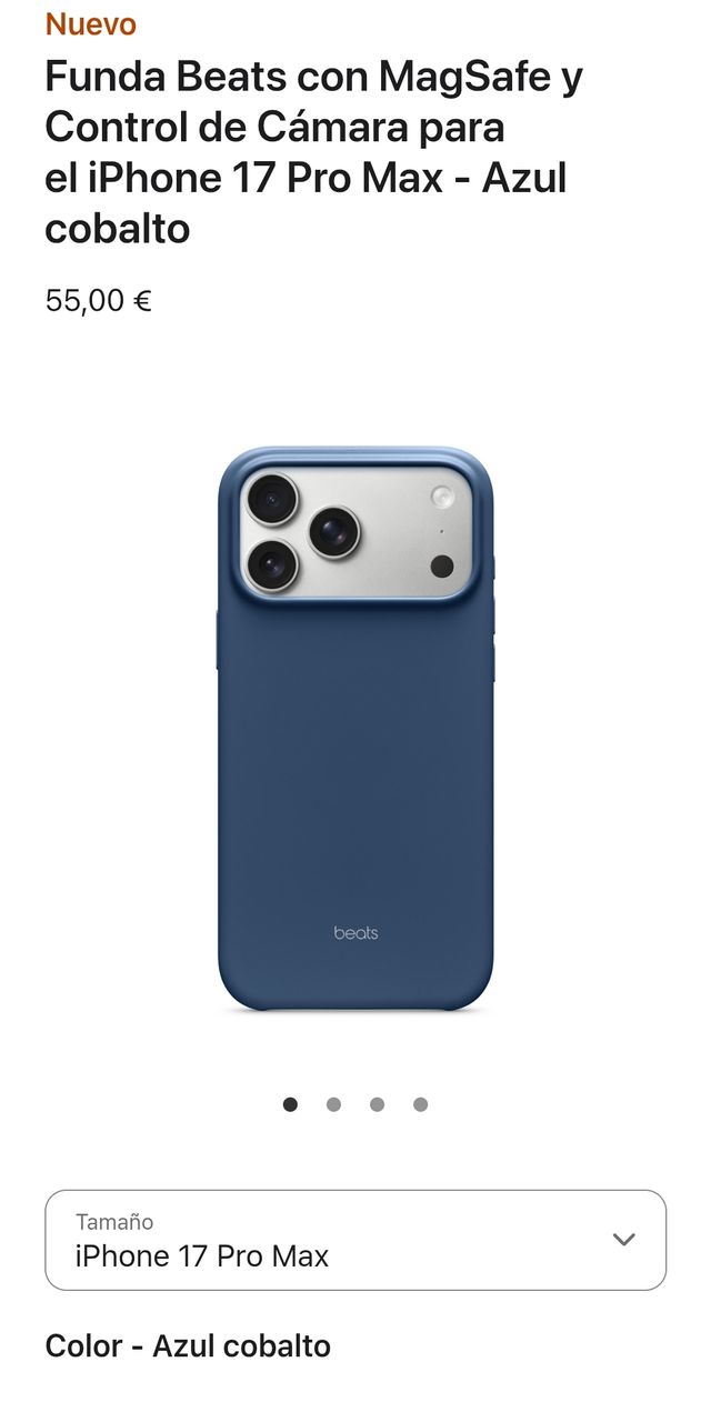 Detalles del productoFunda Beats con MagSafe y Control de Cámara para el iPhone 17 Pro Max - Azul cobalto