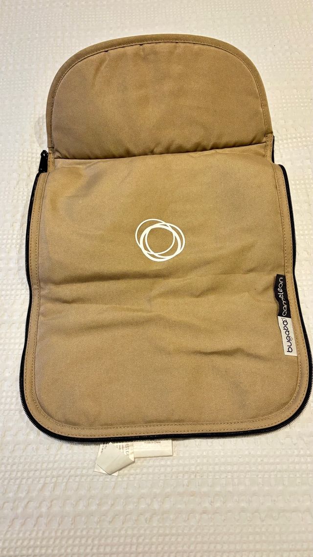 Funda para capazo de Bugaboo Cameleon en color beige. - Diseño acolchado. - Cremallera negra. - Logo de la marca en blanco.
