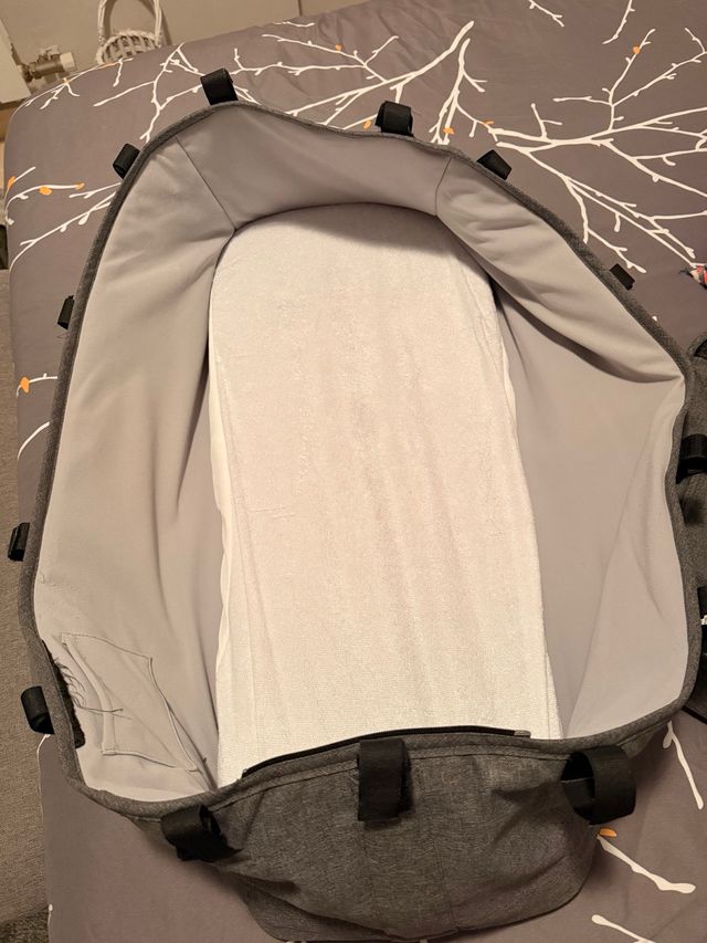 Funda para capazo Bugaboo Donkey en color gris. - Tejido exterior resistente. - Incluye cubrepies de color gris - Incluye colchón y base de madera