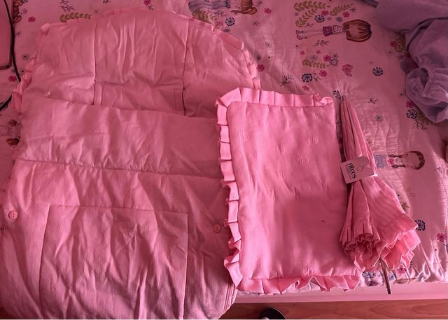 Conjunto de funda para carrito de bebé y sombrilla a juego, ideal para el verano. El color es rosa.