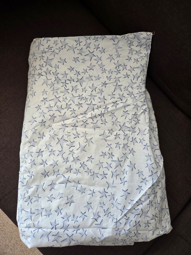 Funda de edredón de cuna Las medidas en la foto es de zara home Y dos bajeras de cuna blancas de algodón Poco uso