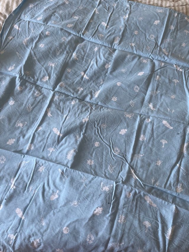 Detalles del productofunda edredón cuna azul, en una cara cuadritos en la otra detalles del bosque.106x121 cm como nueva, y 2 fundas de almohada de cuadritos a conjunto de 53x36 cm más usadas.