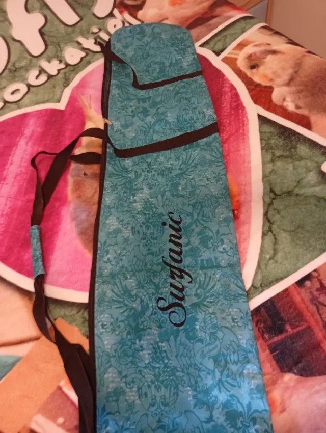 Detalles del productoFunda para esquís de la marca SURFANIC. Con un diseño estampado en tonos turquesa y detalles en negro.