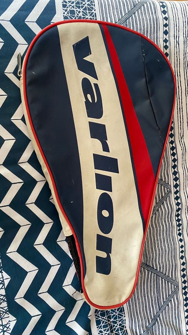 Funda vintage para palas de pádel de la marca Wilson. Diseño retro con detalles en azul marino, blanco y rojo. - Cierre de cremallera. - Material resistente.