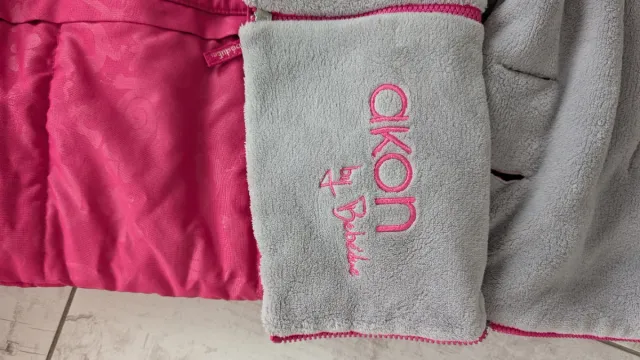 - Bordado con el nombre akon by Bebelé en hilo rosa.