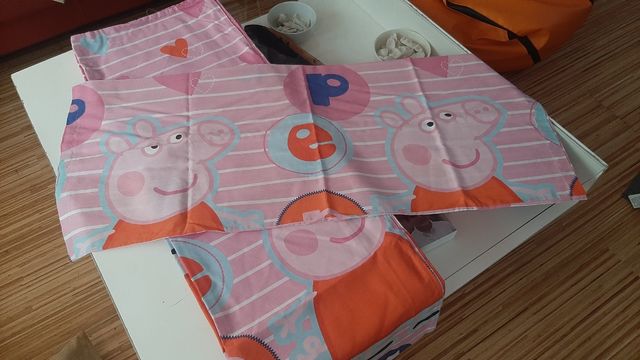 Funda de edredon y funda cojin de pepa pig para cama 80 x210.Pocos usos