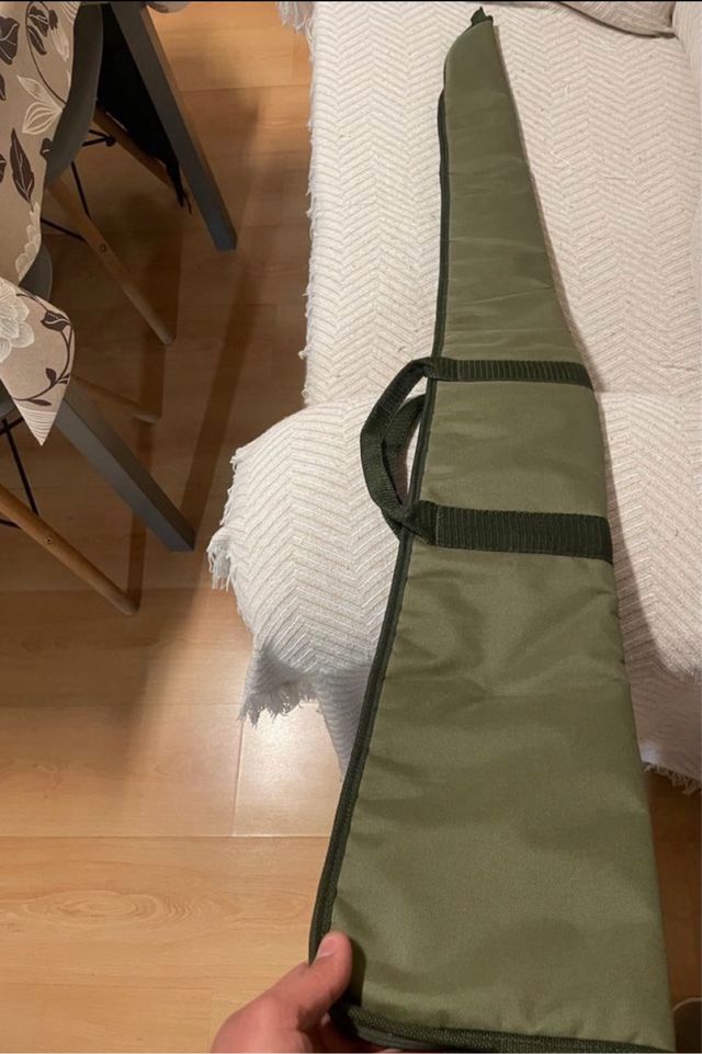 Funda de color verde para escopeta o carabina. Cuenta con asas para su transporte. - Material resistente. - Cierre con cremallera.