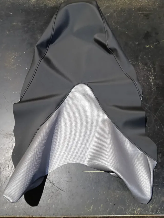 Detalles del productoFunda o tapizado para el asiento de una Suzuki GSR 600. Fabricada en dos materiales, uno negro liso y otro gris texturizado efecto carbono.