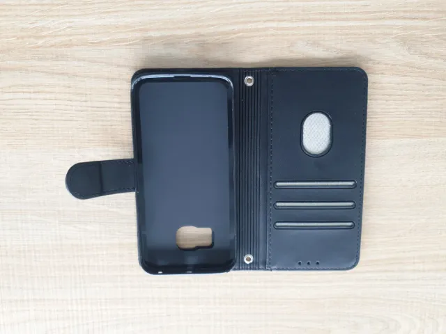 Funda tipo libro para Galaxy S6 Edge. - Color negro. - Compartimentos interiores para tarjetas. - Cierre magnético.
