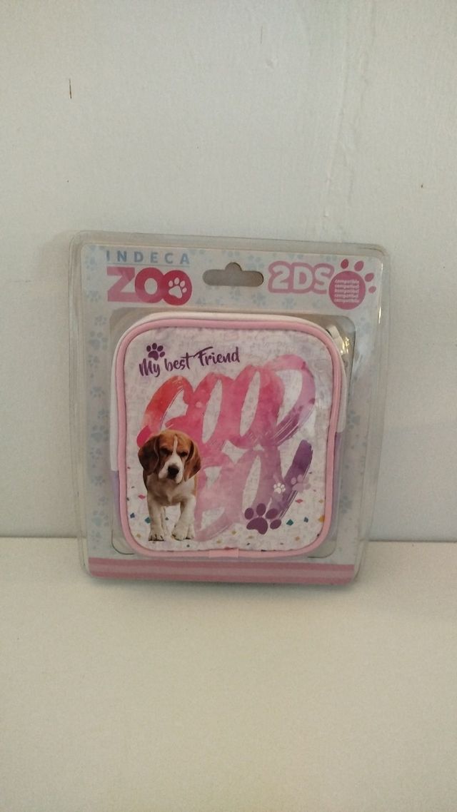 Monedero nuevo de la marca INDECA, compatible con Nintendo 2DS. - Diseño con estampado de perrito y mensaje "My best friend". - Color rosa y blanco. - Material: tela.