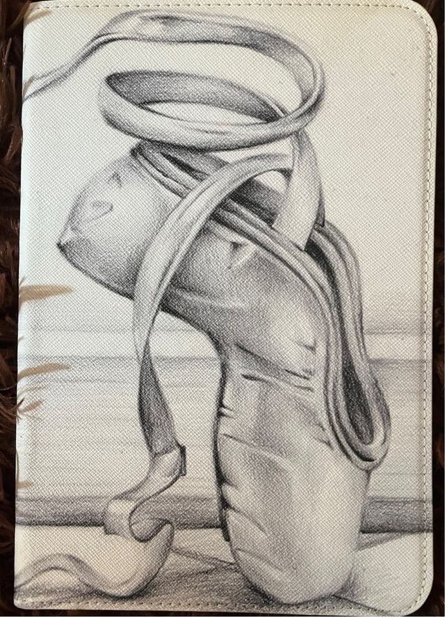 Funda protectora con un diseño artístico de una zapatilla de ballet. - Estampado detallado a lápiz. - Compatible con iPad Mini 4 y iPad Mini 5.