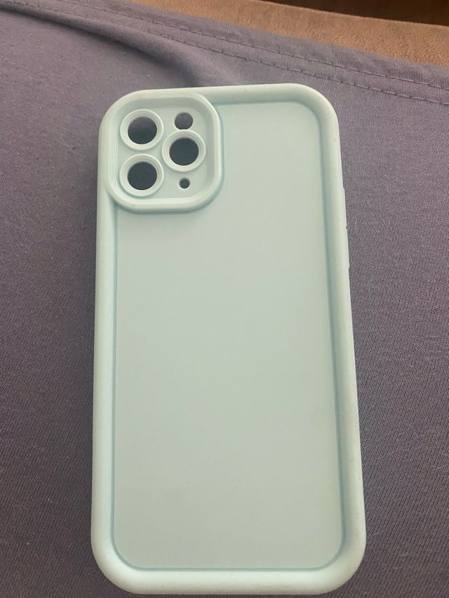 Funda protectora para iPhone 11 Pro de color azul claro. - Diseño con borde elevado para proteger la pantalla y las cámaras. - Material suave al tacto.