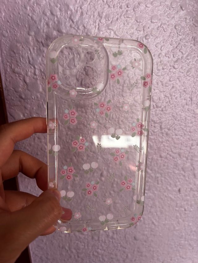 - Funda transparente con diseño floral.