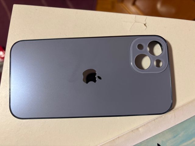 Vendo funda trasera de cristal templado para iPhone 13. Es de color gris / azul y se encuentra en buen estado.