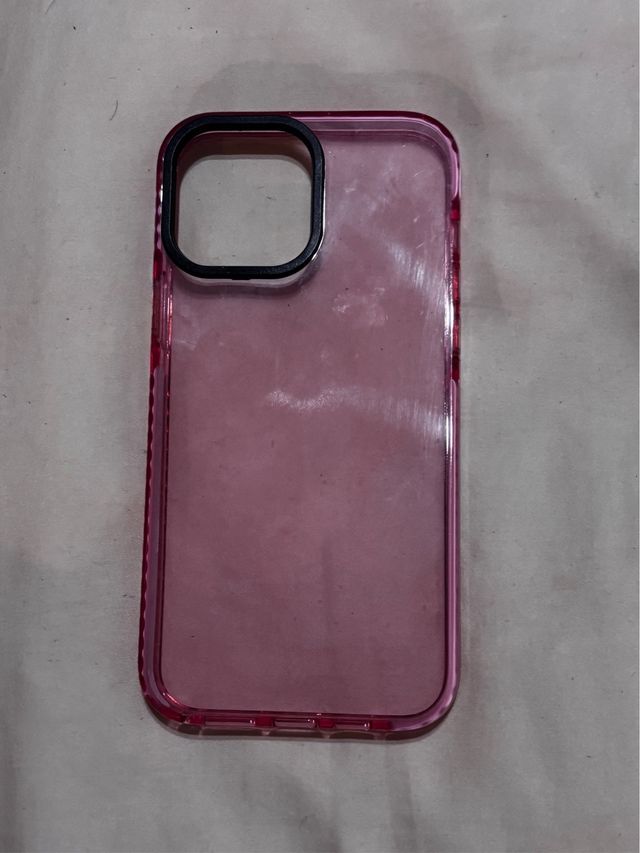 Detalles del productoFunda protectora para iPhone 13 Pro Max en color rosa translúcido.