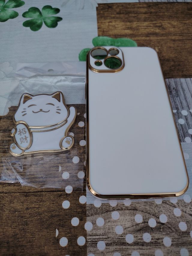 Detalles del productoElegante funda para iPhone 14. Es de color blanco con detalles dorados. Incluye un charm de un gato dorado muy bonito. - Diseño elegante y minimalista. - Protección para tu teléfono. - Incluye un charm de gato. - Perfecto estado.