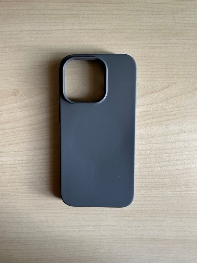 Funda protectora para iPhone 14 Pro en color gris. - Sin uso. - Diseño liso y mate. - Material de silicona. - Recorte preciso para la cámara.