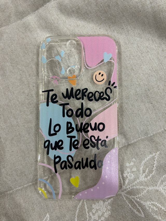 Detalles del productoFunda transparente para iPhone 14 Pro Max con un diseño único y motivador. La funda tiene un fondo transparente con detalles de colores pastel y frases inspiradoras.